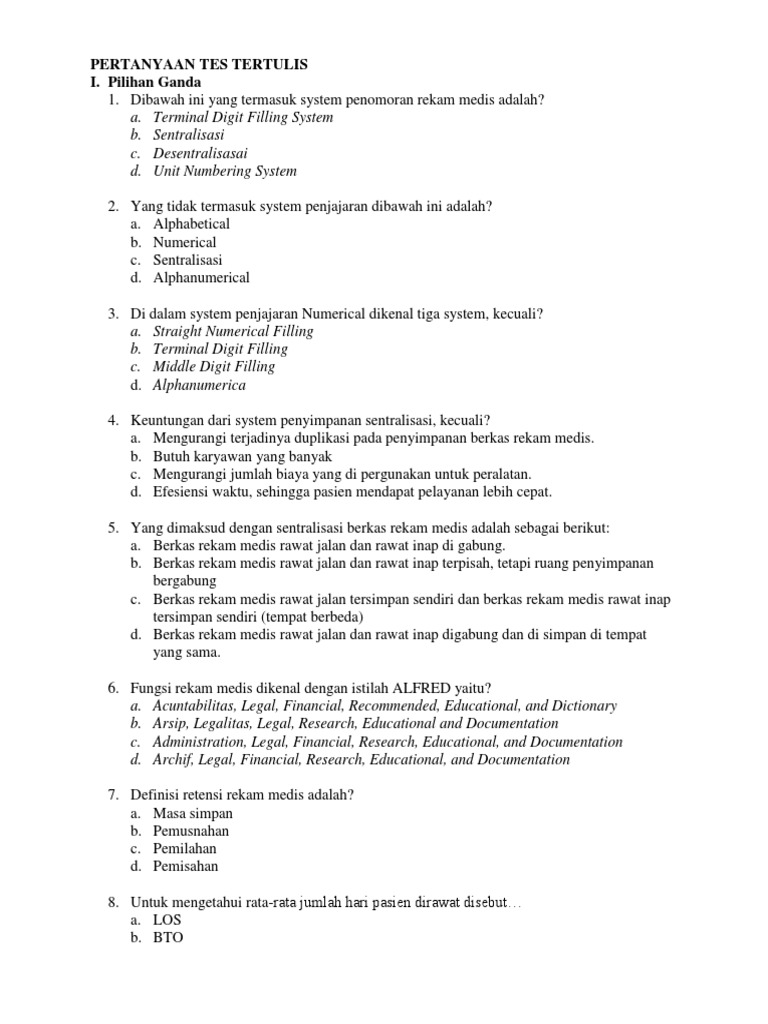 Pertanyaan Tes Tertulis Rekam Medis Pdf
